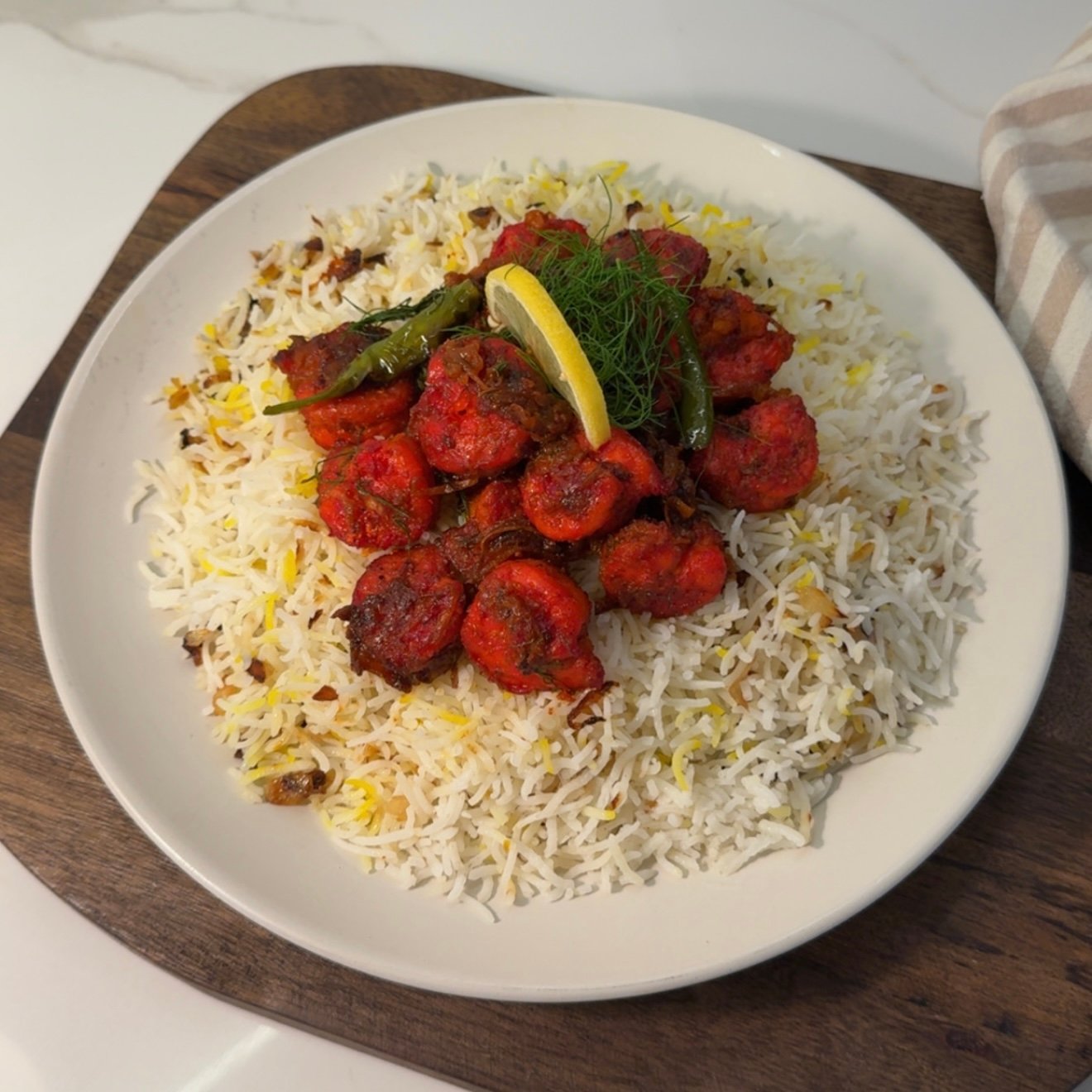- බත් සඳහා: සම්පූර්ණයෙන්ම පිසූ සුදු සහල් භාවිතා කරන්න. බැදපු ළූණු, රෝස වතුර සහ කහ ආහාර වර්ණක එකතු කරන්න.