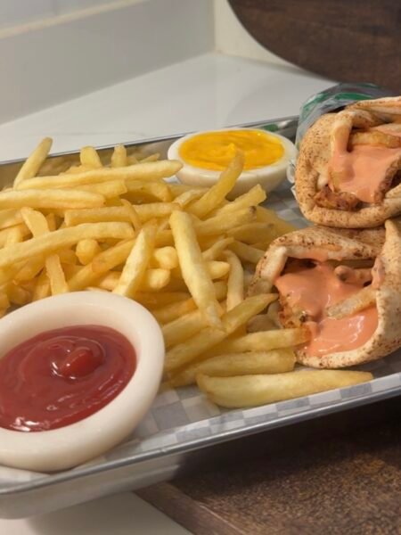 4- Mutabbal, na biringanya za kukaanga, komamanga, na zaatar safi.