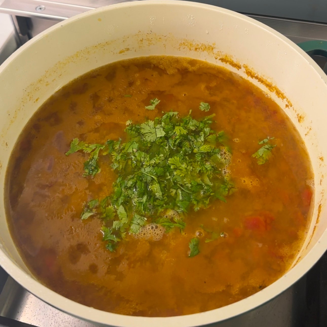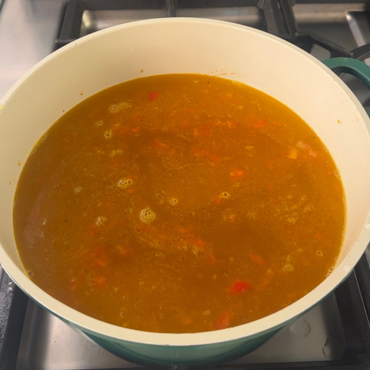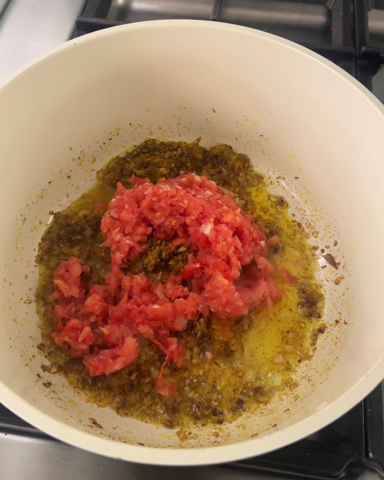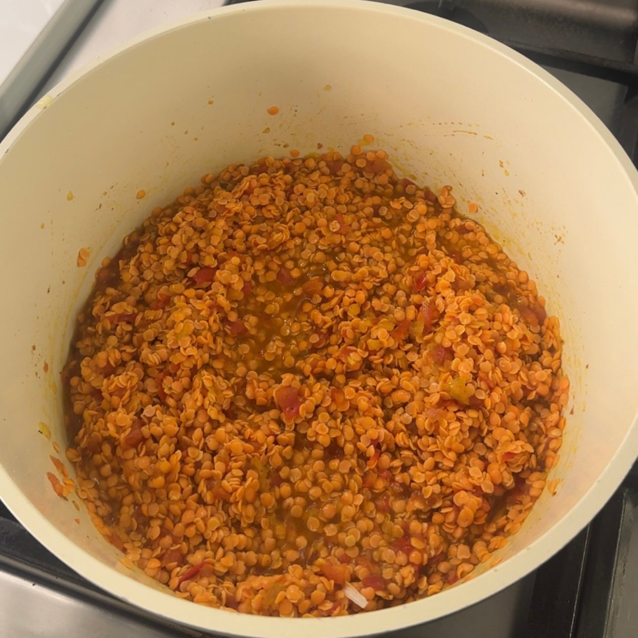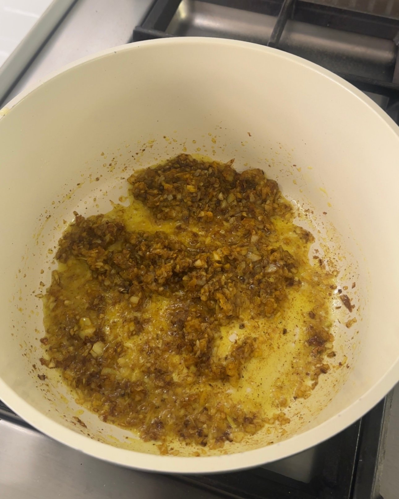 على النار، اضيف بصل وماجي وزيت زيتون وكركم وكمون.
