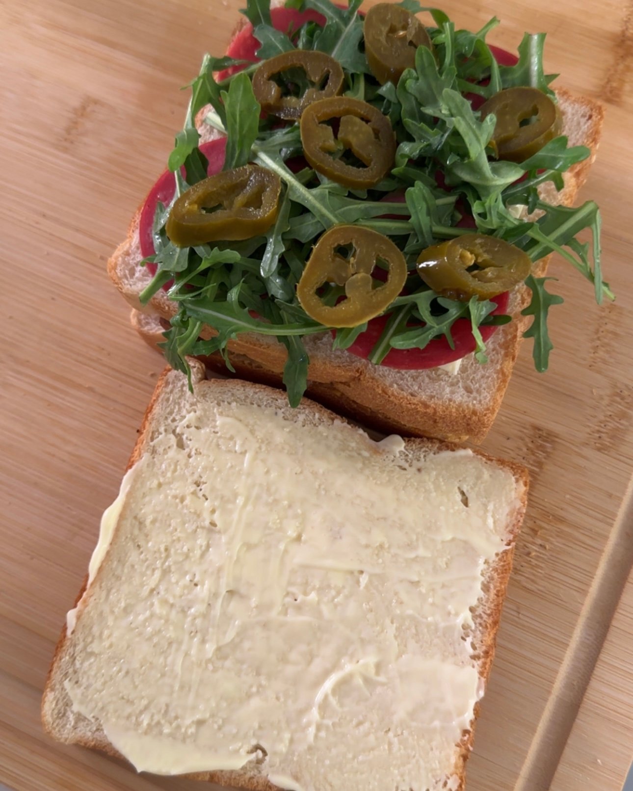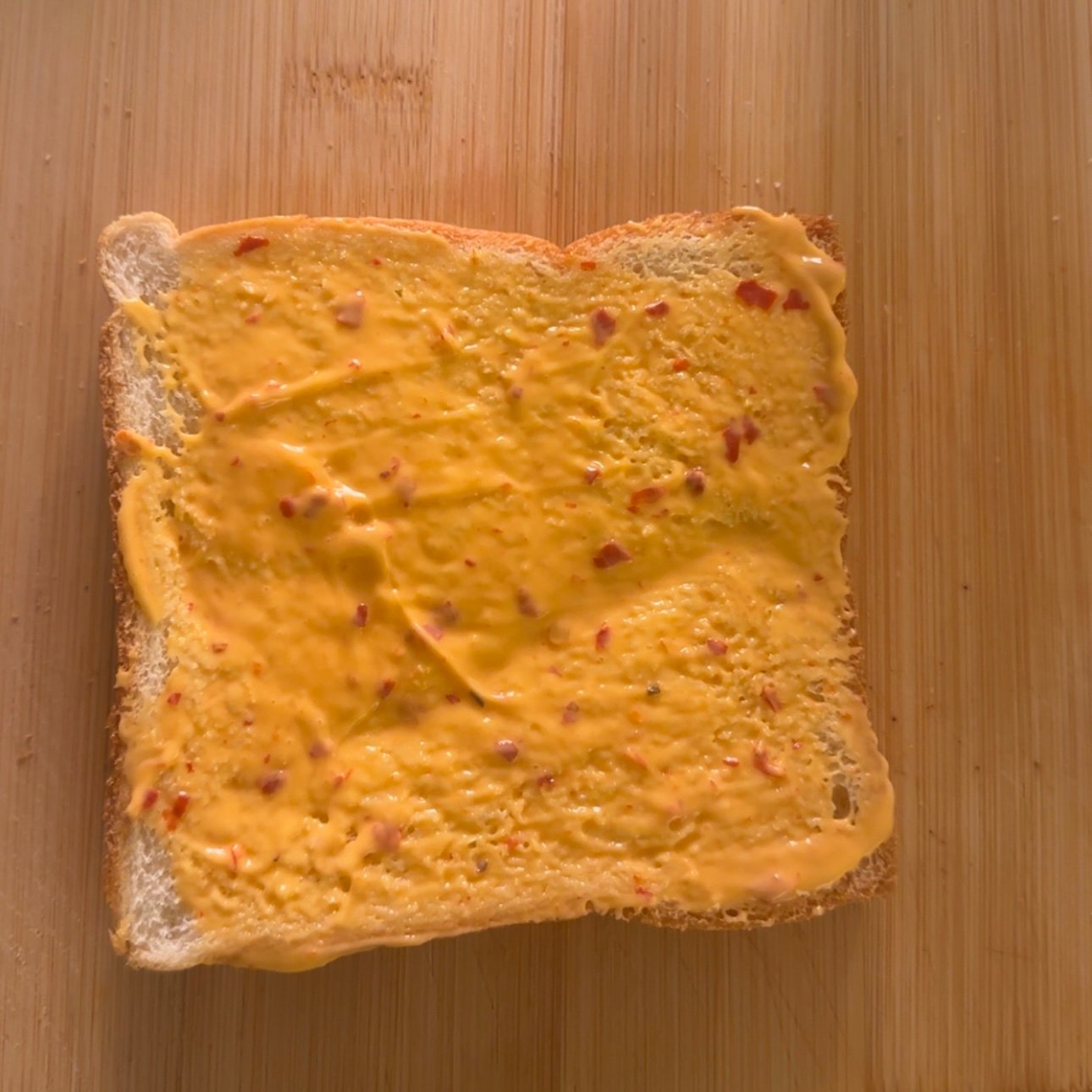 - احمر التوست مع زبدة ثم اضيف مايونيز فلفل.